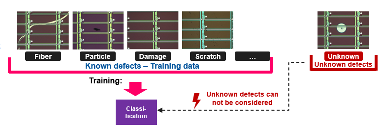 以下上述描述的範例,顯示向分類器饋送未知的缺陷樣本影像 [1].