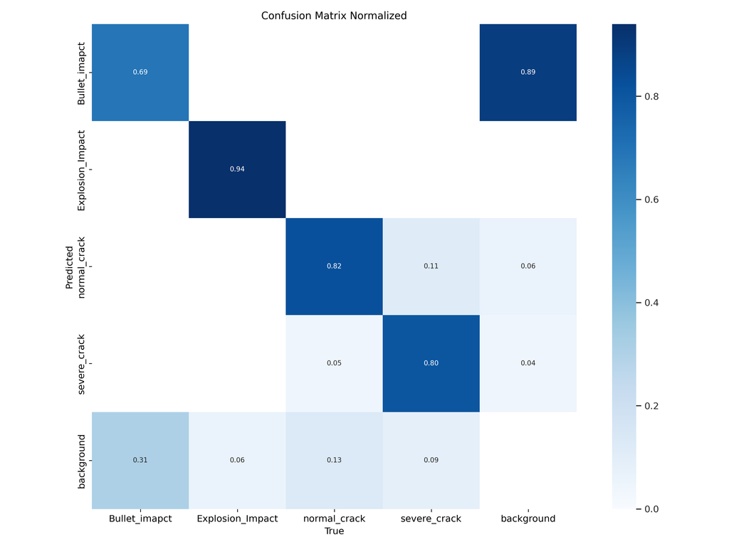 - 保險理賠調查:保險公司可運用該模型結果評估損害理賠。此模型有助於區分一般性磨損(例如正常裂痕)與嚴重事故(如彈痕或爆炸),從而支援精準的理賠評估。